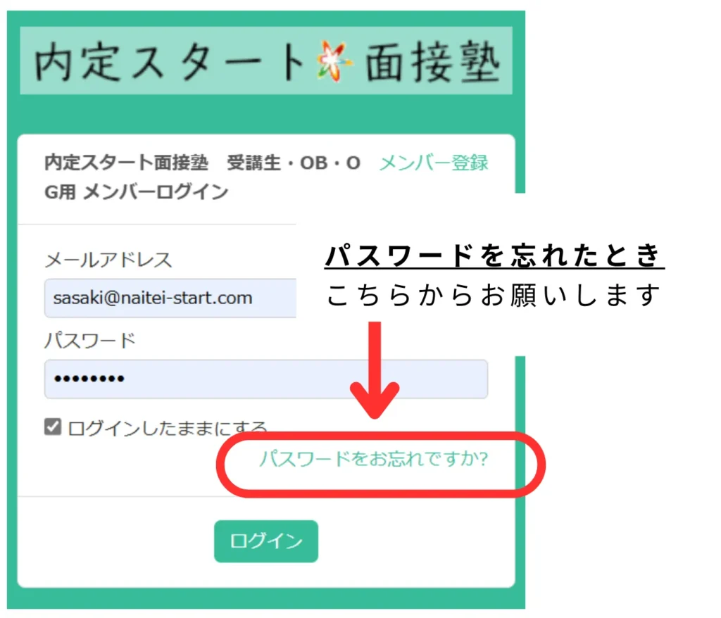 (講師佐々木も見られません。そのためパスワードを忘れた場合は、以下から再設定をお願いします)